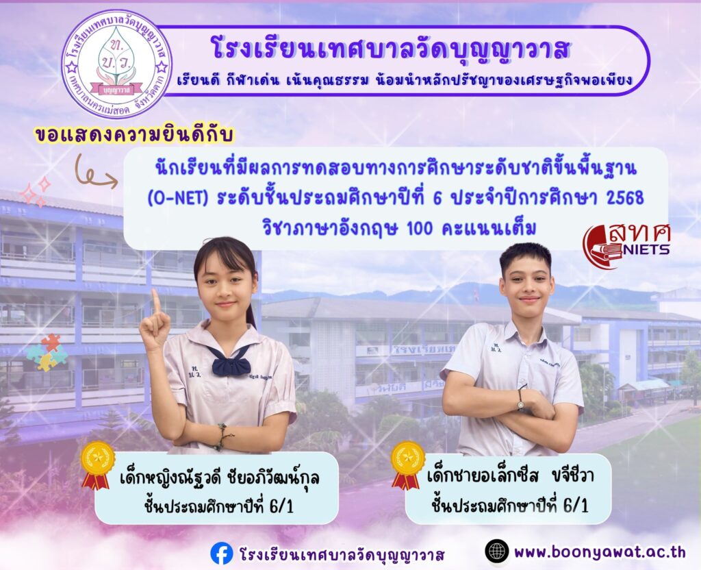 ประจำปีการศึกษา 2568 วิชาภาษาอังกฤษได้ 100 คะแนนเต็ม ✨🏆